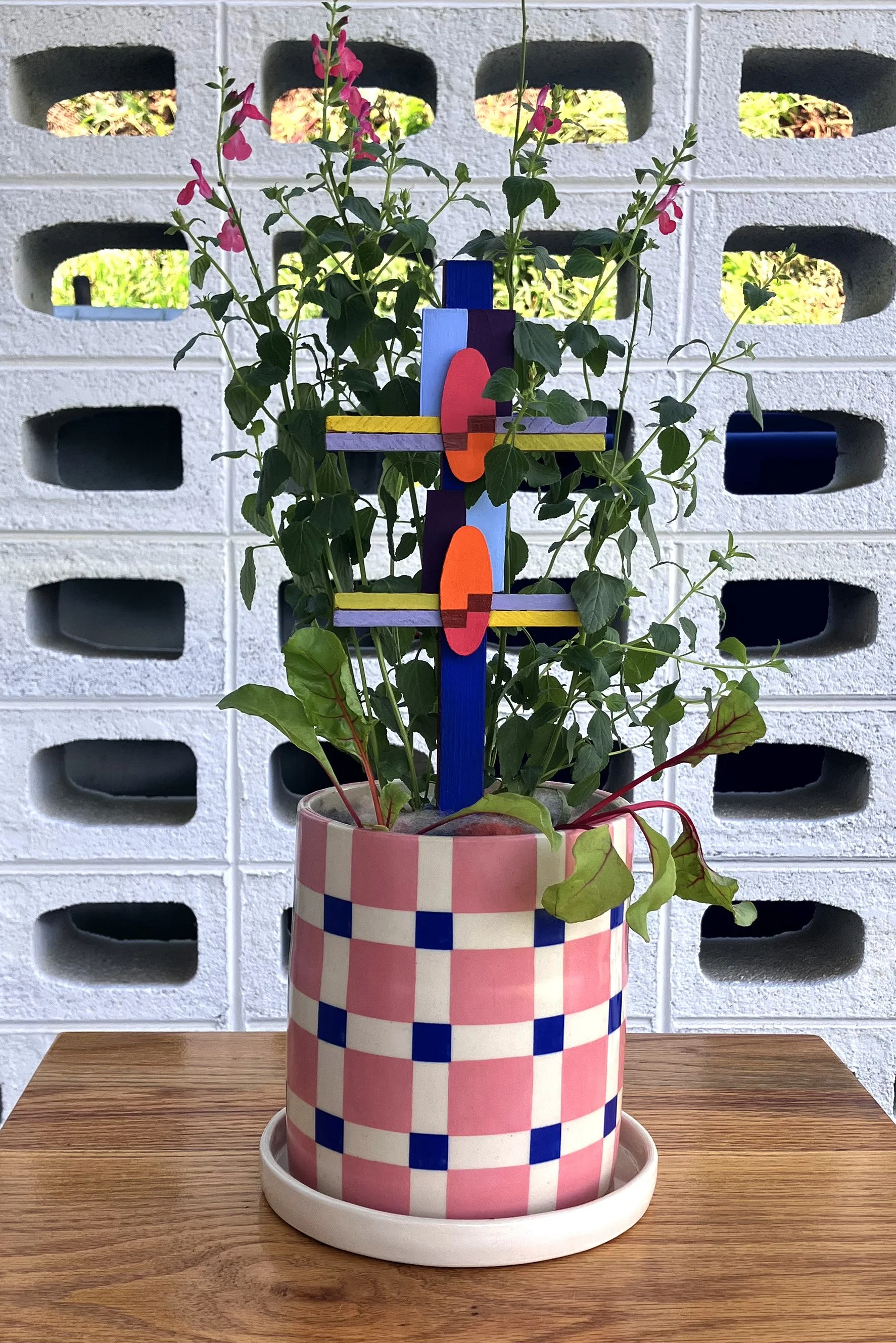 Container Garden I, Vessel: Knook Ceramics + Trellis: Martha Clippinger + Hand Dyed Wool Mulch: Suzanne Dittenber + Salvia, Chard, 2025, Tracey Morgan Gallery